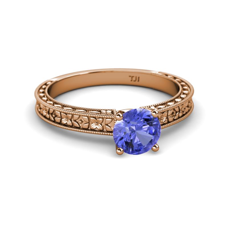 Round (6.50 mm) Tanzanite 0.92 ct Floral Engraved Milgrain Womens Solitaire Engagement Ring 14K Rose Gold More Details ...
