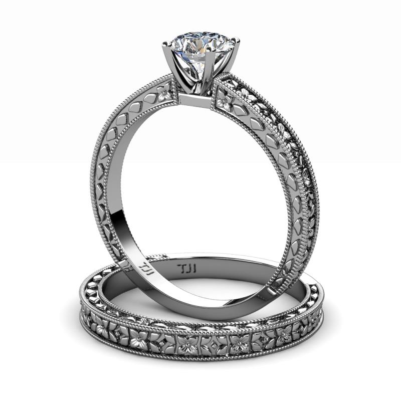 1.00 ct GIA Certified Classic Natural Diamond (6.50 mm) Floral Engraved Solitaire Women Engagement Ring & Wedding Band Set in @PrimaryMeta More Details ...
