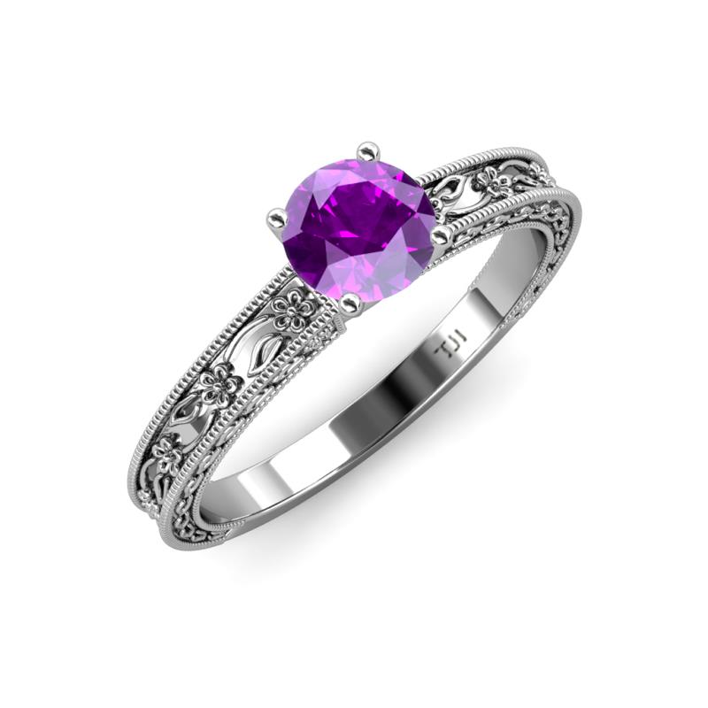 Round Amethyst Floral Engraved Milgrain Womens Solitaire Engagement Ring 0.87 ct 14K White Gold More Details ...
