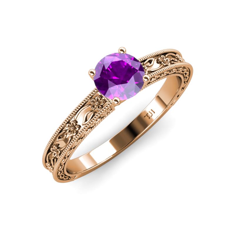 Round Amethyst Floral Engraved Milgrain Womens Solitaire Engagement Ring 0.87 ct 14K Rose Gold More Details ...