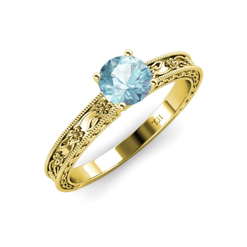 Round Aquamarine Floral Engraved Milgrain Womens Solitaire Engagement Ring 0.87 ct 14K Yellow Gold More Details ...
