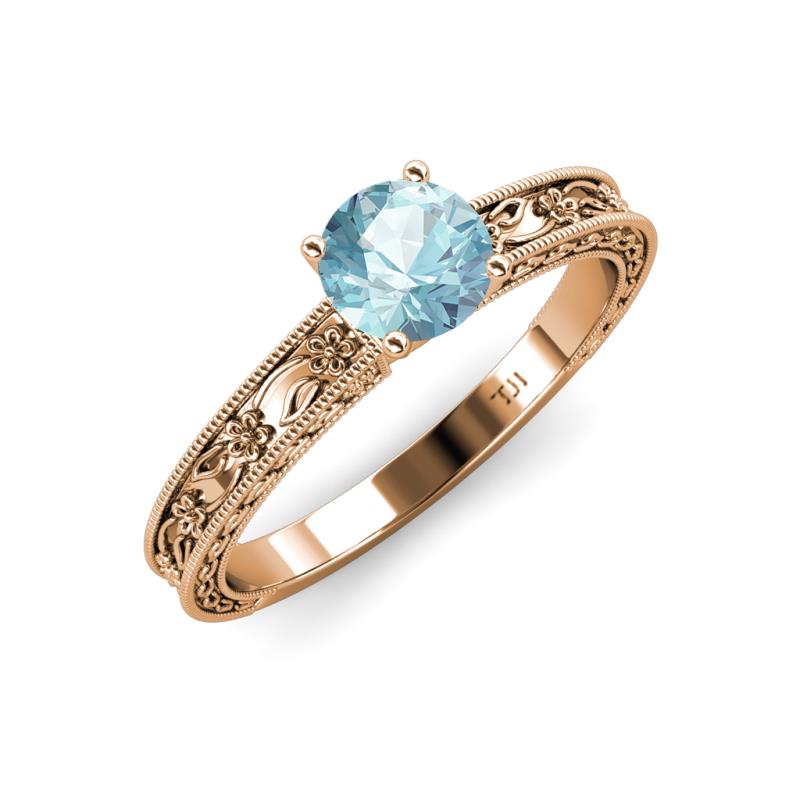Round Aquamarine Floral Engraved Milgrain Womens Solitaire Engagement Ring 0.87 ct 14K Rose Gold More Details ...