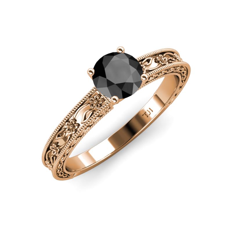 Round Black Diamond Floral Engraved Milgrain Womens Solitaire Engagement Ring 1.00 ct 14K Rose Gold More Details ...