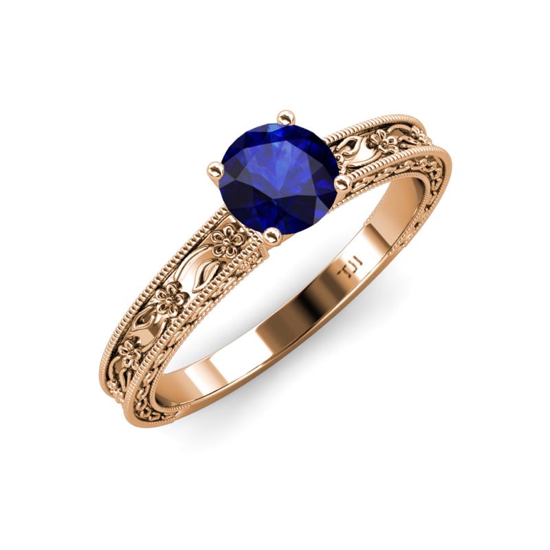 Round Blue Sapphire Floral Engraved Milgrain Womens Solitaire Engagement Ring 0.96 ct 18K Rose Gold More Details ...