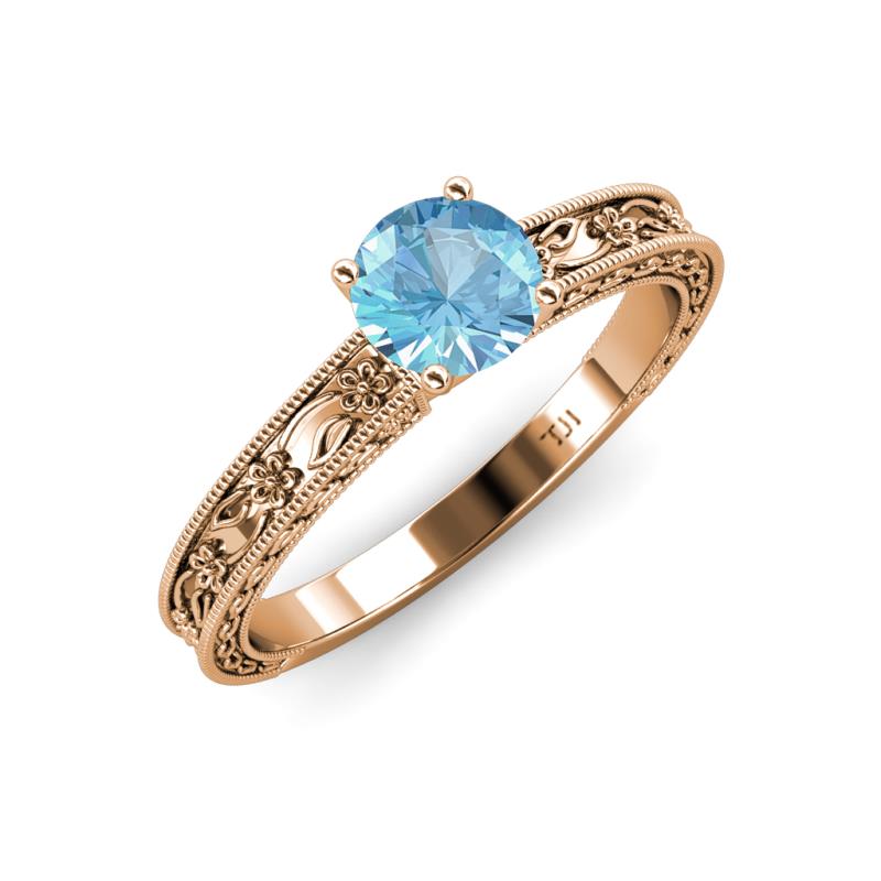 Round Blue Topaz Floral Engraved Milgrain Womens Solitaire Engagement Ring 0.95 ct 18K Rose Gold More Details ...