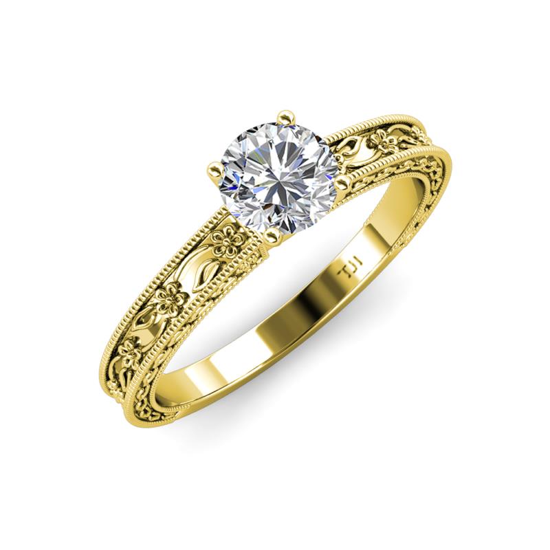 Round Certified Diamond Floral Engraved Milgrain Womens Solitaire Engagement Ring 1.00 ct 14K Yellow Gold More Details ...