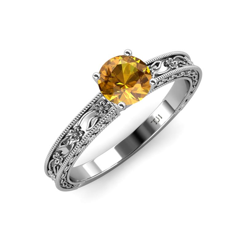 Round Citrine Floral Engraved Milgrain Womens Solitaire Engagement Ring 0.87 ct 14K White Gold More Details ...