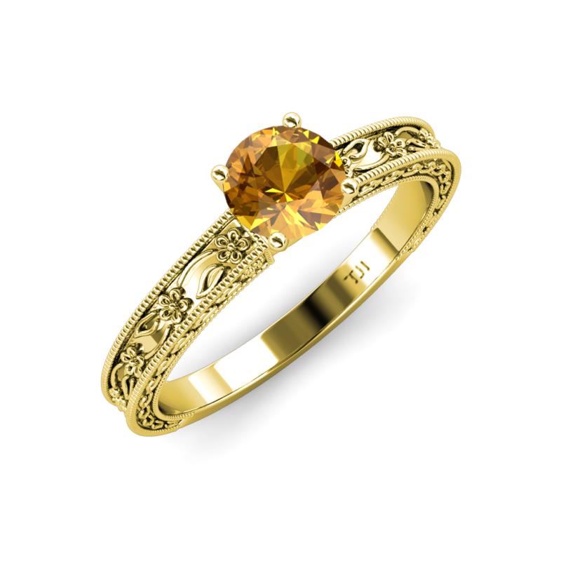 Round Citrine Floral Engraved Milgrain Womens Solitaire Engagement Ring 0.87 ct 14K Yellow Gold More Details ...