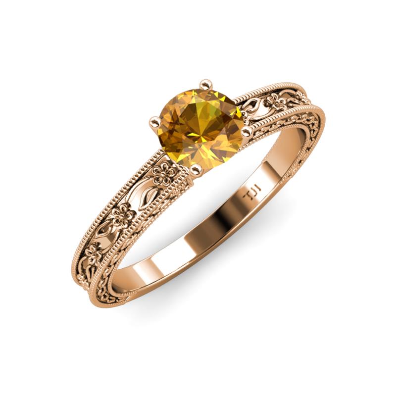 Round Citrine Floral Engraved Milgrain Womens Solitaire Engagement Ring 0.87 ct 14K Rose Gold More Details ...