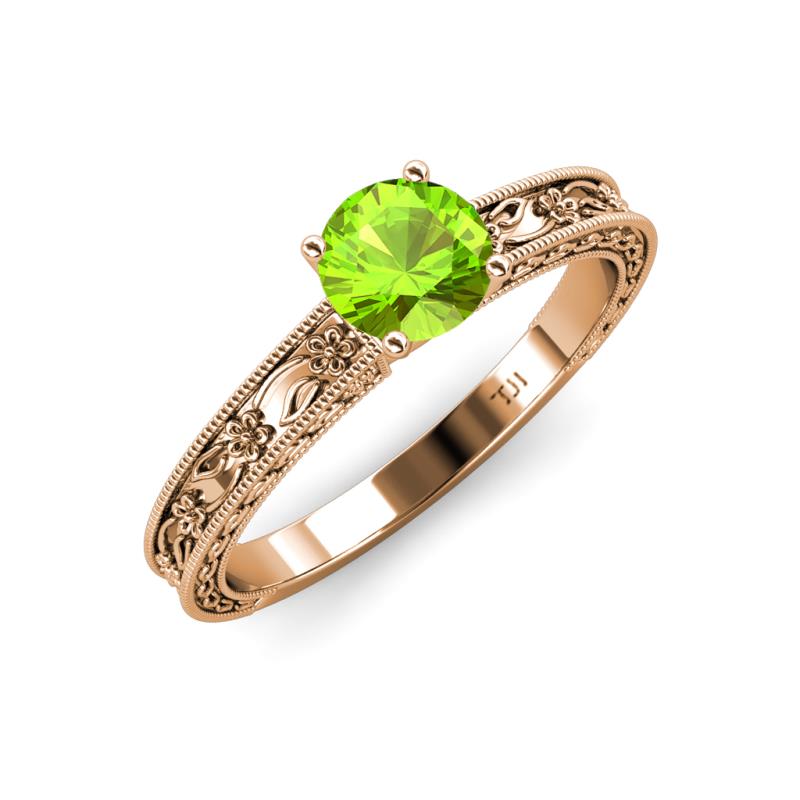 Round Peridot Floral Engraved Milgrain Womens Solitaire Engagement Ring 1.10 ct 14K Rose Gold More Details ...