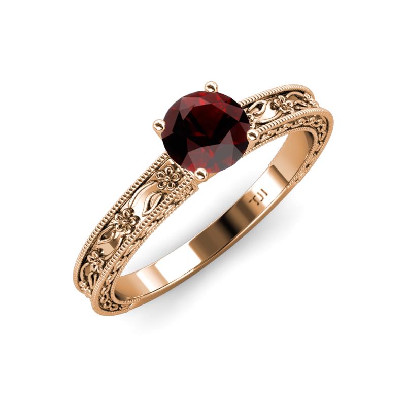 Round Red Garnet Floral Engraved Milgrain Womens Solitaire Engagement Ring 1.05 ct 14K Rose Gold More Details ...
