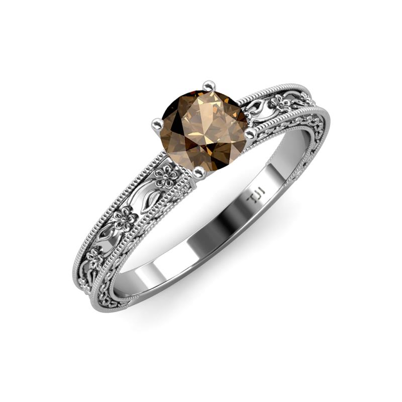 Round Smoky Quartz Floral Engraved Milgrain Womens Solitaire Engagement Ring 1.00 ct 14K White Gold More Details ...