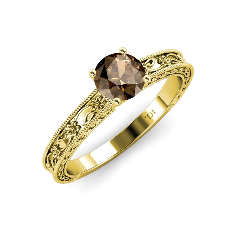 Round Smoky Quartz Floral Engraved Milgrain Womens Solitaire Engagement Ring 1.00 ct 14K Yellow Gold More Details ...