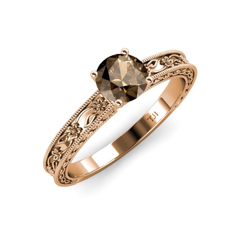 Round Smoky Quartz Floral Engraved Milgrain Womens Solitaire Engagement Ring 1.00 ct 18K Rose Gold More Details ...