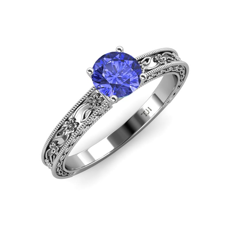 Round Tanzanite Floral Engraved Milgrain Womens Solitaire Engagement Ring 0.92 ct 18K White Gold More Details ...
