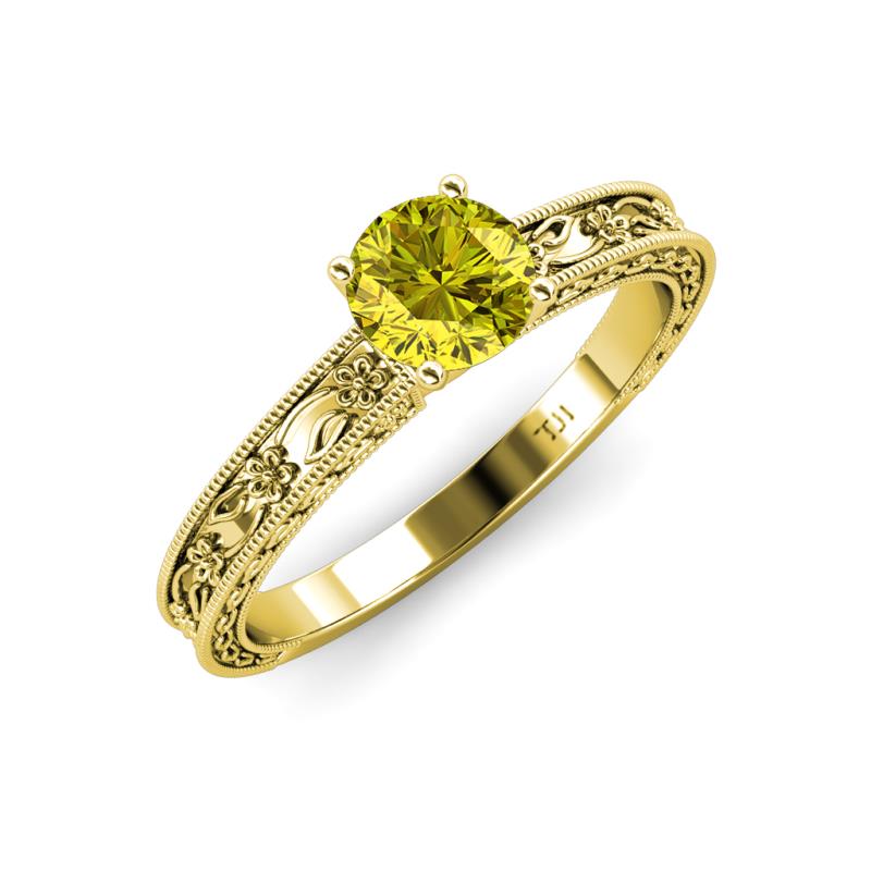 Round Yellow Diamond Floral Engraved Milgrain Womens Solitaire Engagement Ring 0.80 ct 18K Yellow Gold More Details ...