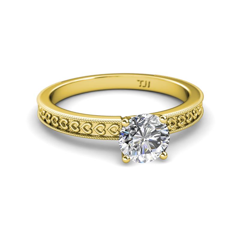 1.00 ct IGI Certified Lab Grown Diamond Round (6.50 mm) Floral Engraved Milgrain Women Solitaire Engagement Ring in 18K Yellow Gold More Details ...