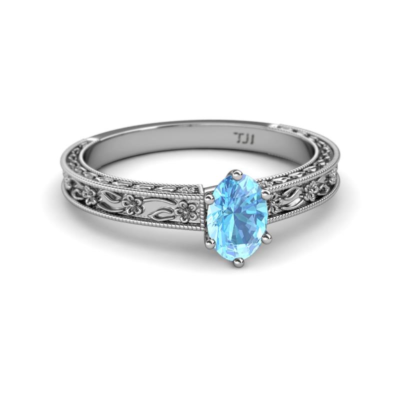Oval Cut (7x5 mm) Blue Topaz 1.00 ct Floral Engraved Women Solitaire Engagement Ring 14K White Gold More Details ...