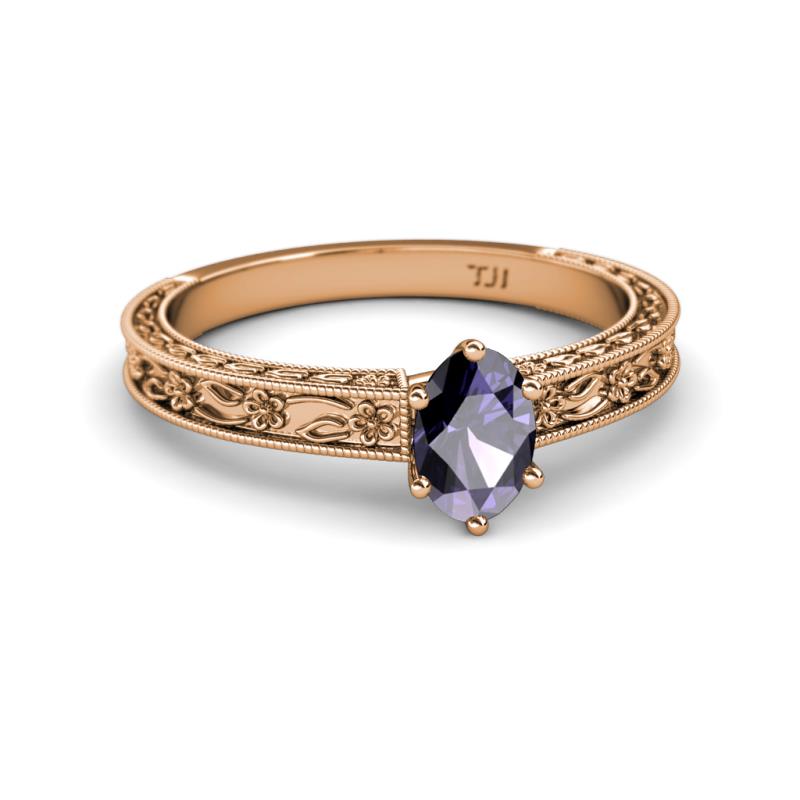Oval Cut (7x5 mm) Iolite 0.75 ct Floral Engraved Women Solitaire Engagement Ring 18K Rose Gold More Details ...