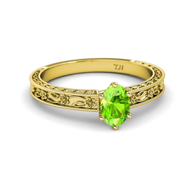 Oval Cut (7x5 mm) Peridot 1.00 ct Floral Engraved Women Solitaire Engagement Ring 18K Yellow Gold More Details ...