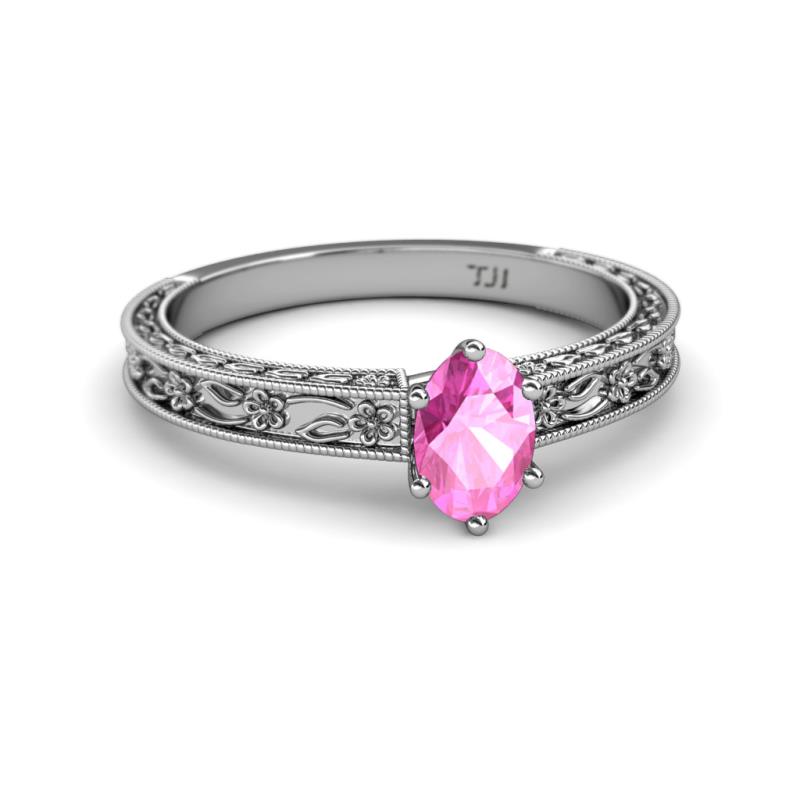Oval Cut (7x5 mm) Pink Sapphire 1.00 ct Floral Engraved Women Solitaire Engagement Ring 18K White Gold More Details ...