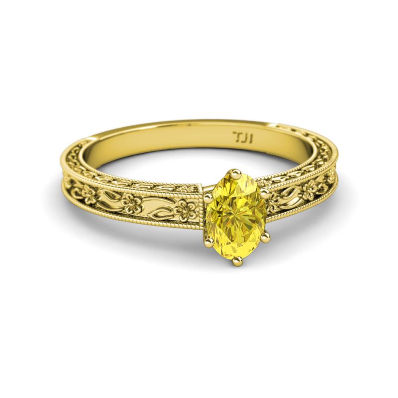 Oval Cut (7x5 mm) Yellow Sapphire 1.00 ct Floral Engraved Women Solitaire Engagement Ring 18K Yellow Gold More Details ...