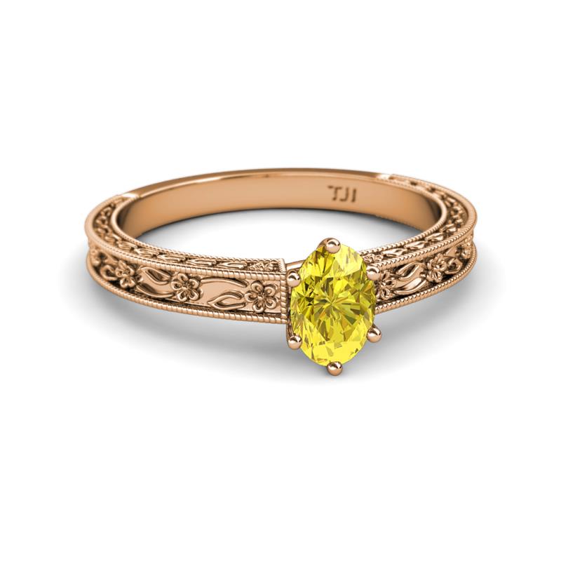 Oval Cut (7x5 mm) Yellow Sapphire 1.00 ct Floral Engraved Women Solitaire Engagement Ring 18K Rose Gold More Details ...