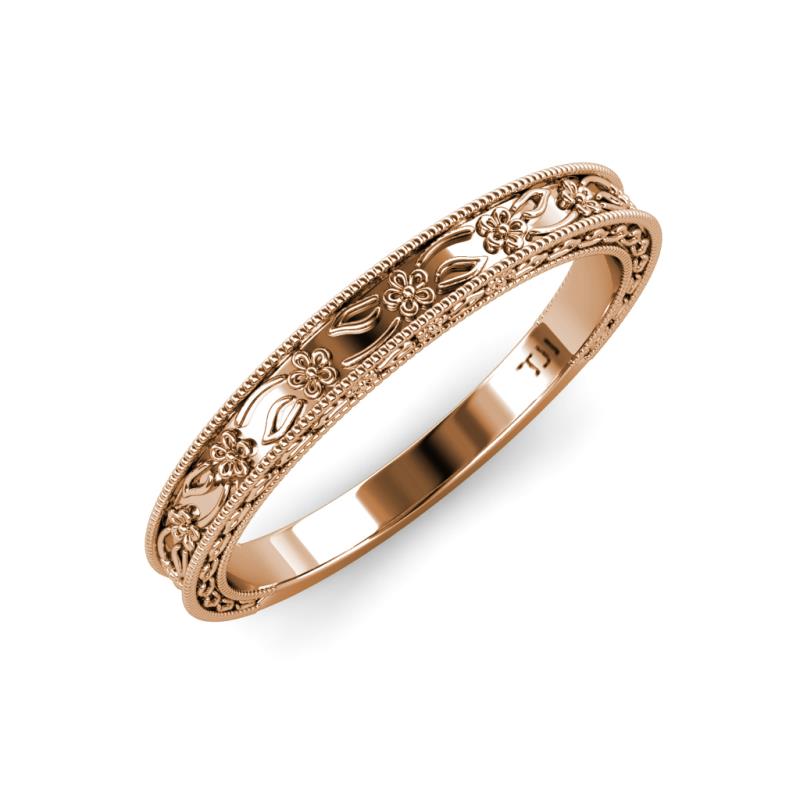 Floral Engraved Wedding Band with Milgrain Work in 14K Rose Gold. More Details ...