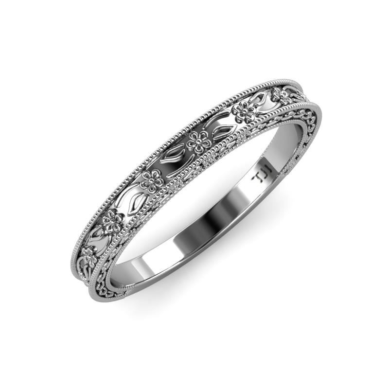 Floral Engraved Wedding Band with Milgrain Work in 18K White Gold. More Details ...