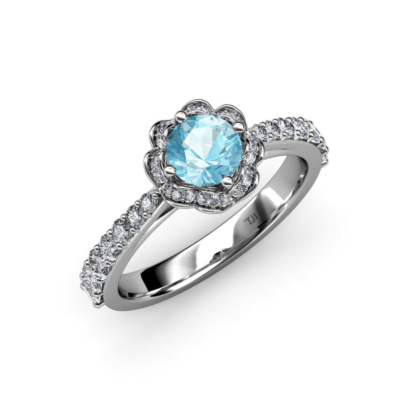 Aquamarine and Diamond Floral Womens Halo Engagement Ring 1.25 ctw 18K White Gold More Details ...