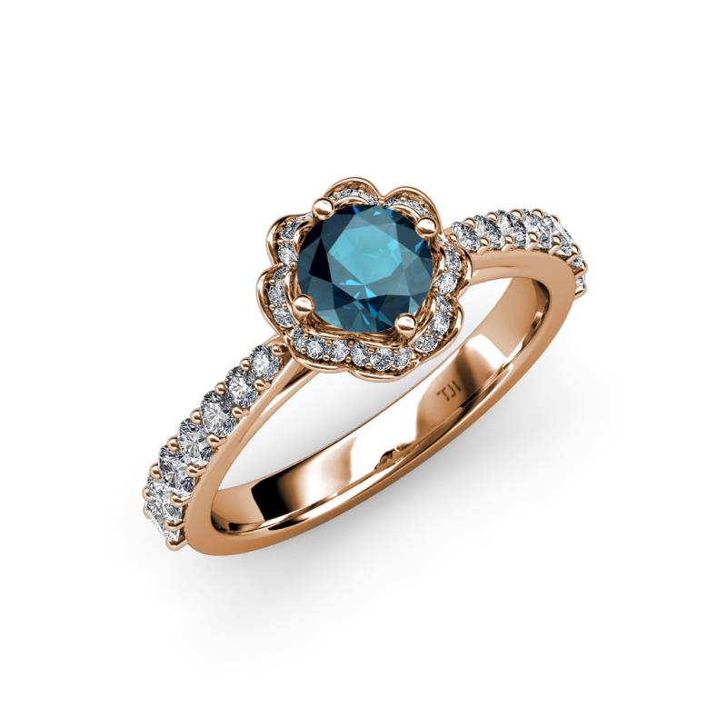 Blue and White Diamond Floral Womens Halo Engagement Ring 1.38 ctw 14K Rose Gold More Details ...