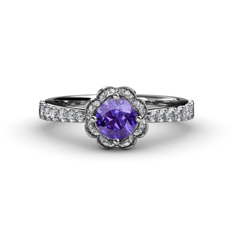 Iolite Diamond (SI2-I1, G-H) Floral Halo Engagement Ring 1.35 ct tw in Palladium. More Details ...