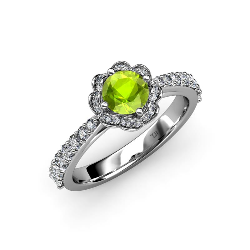 Peridot and Diamond Floral Womens Halo Engagement Ring 1.48 ctw 18K White Gold More Details ...