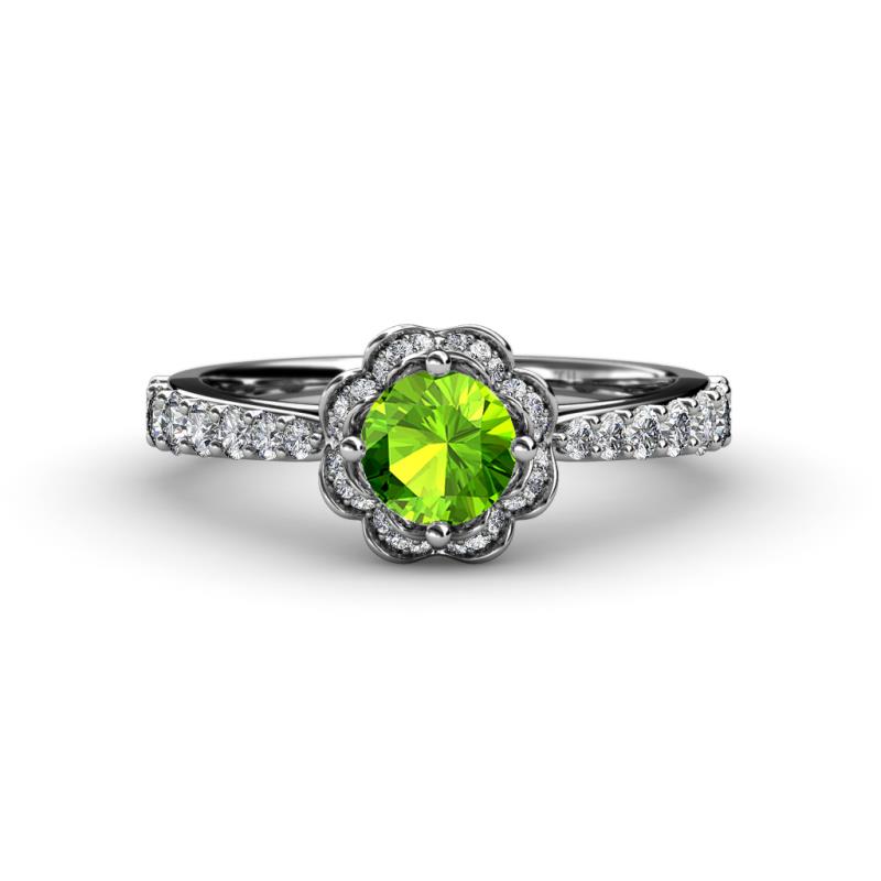 Peridot Diamond (SI2-I1, G-H) Floral Halo Engagement Ring 1.50 ct tw in Palladium. More Details ...