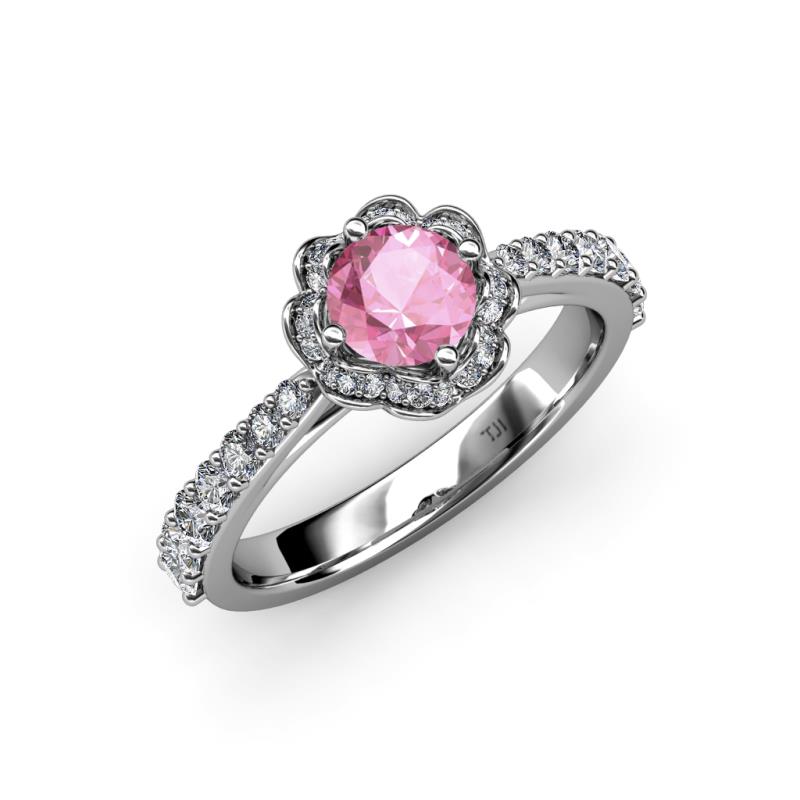 Pink Tourmaline and Diamond Floral Womens Halo Engagement Ring 1.25 ctw 18K White Gold More Details ...