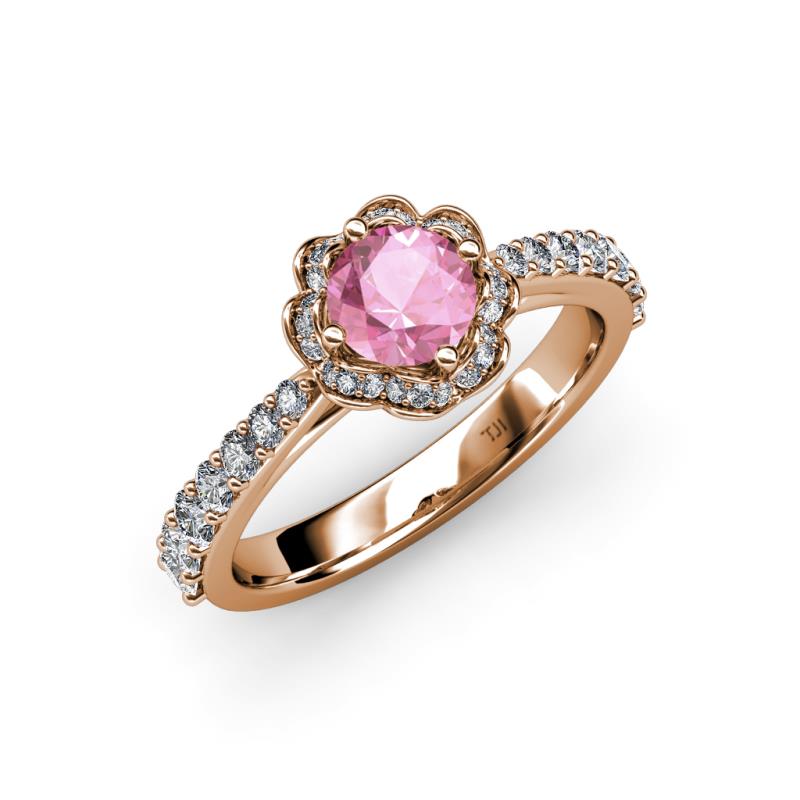 Pink Tourmaline and Diamond Floral Womens Halo Engagement Ring 1.25 ctw 18K Rose Gold More Details ...