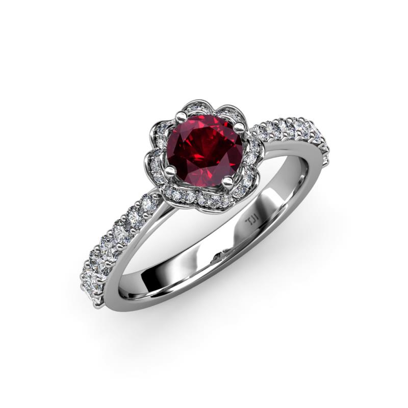 Ruby and Diamond Floral Womens Halo Engagement Ring 1.33 ctw 14K White Gold More Details ...
