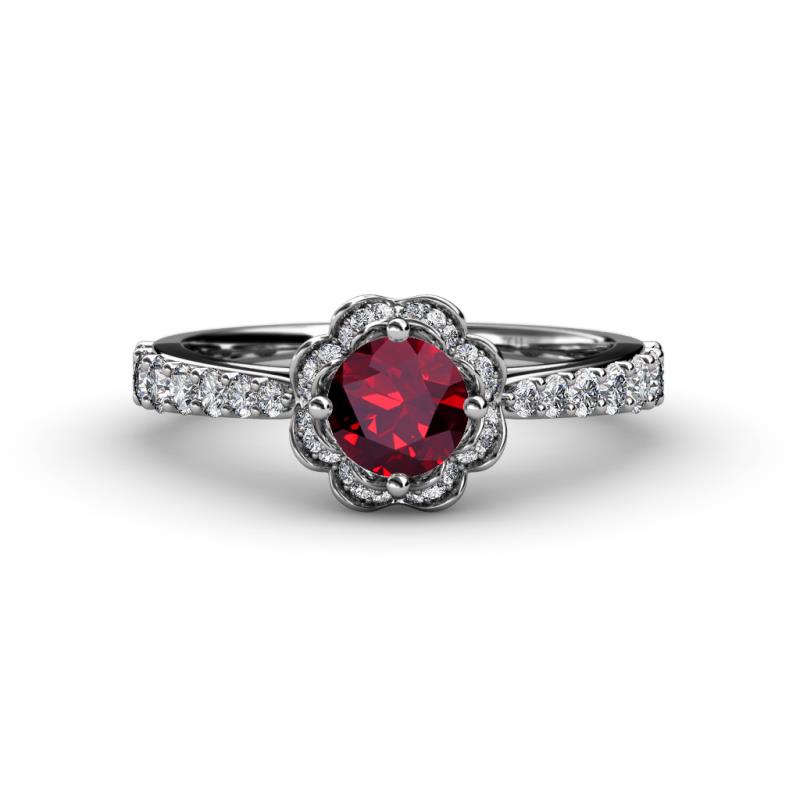 Ruby Diamond (SI2-I1, G-H) Floral Halo Engagement Ring 1.45 ct tw in Palladium. More Details ...