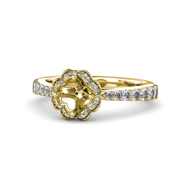 Diamond Four Prong Semi Mount Womens Floral Halo Engagement Ring Setting 0.38 ctw 18K Yellow Gold More Details ...