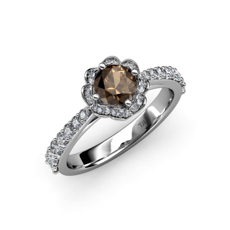 Smoky Quartz and Diamond Floral Womens Halo Engagement Ring 1.38 ctw 14K White Gold More Details ...