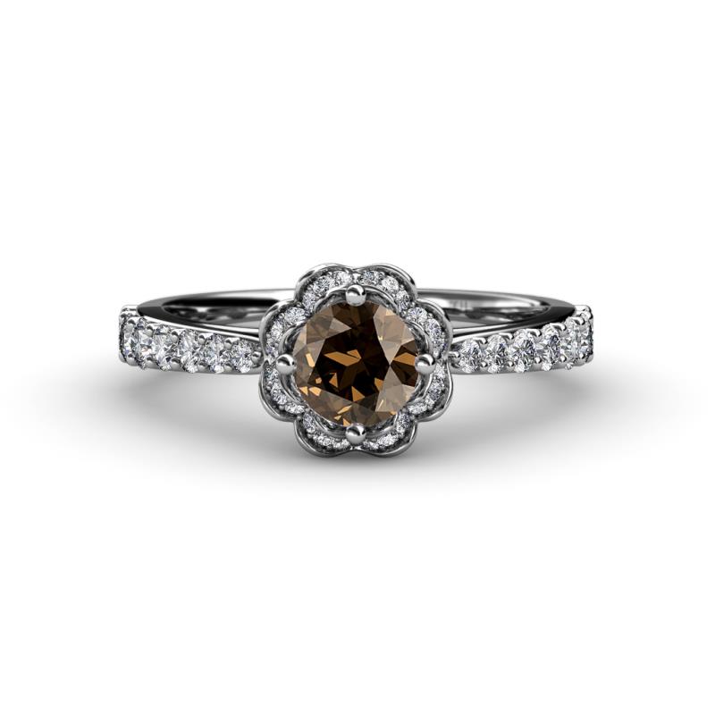 Smoky Quartz Diamond (SI2-I1, G-H) Floral Halo Engagement Ring 1.35 ct tw in Palladium. More Details ...