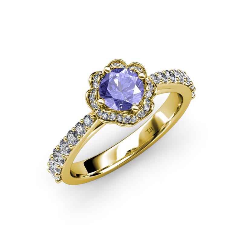 Tanzanite and Diamond Floral Womens Halo Engagement Ring 1.30 ctw 14K Yellow Gold More Details ...