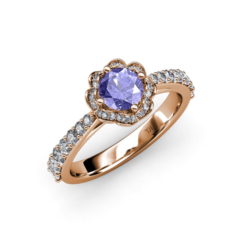 Tanzanite and Diamond Floral Womens Halo Engagement Ring 1.30 ctw 14K Rose Gold More Details ...