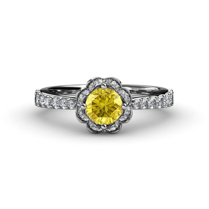 Yellow Sapphire Diamond (SI2-I1, G-H) Floral Halo Engagement Ring 1.40 ct tw in Palladium. More Details ...