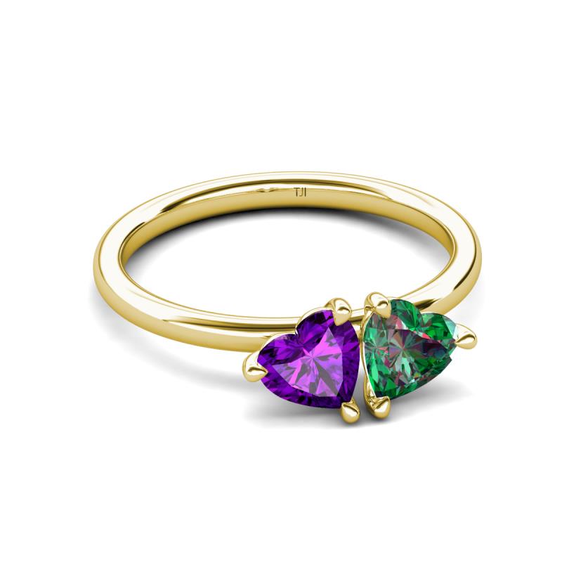 1.43 ctw Heart Shape (6.00 mm) Amethyst & Lab Created Alexandrite with Tiger Claw Prong setting Two Stone Duo Women Engagement Ring in 10K Yellow Gold More Details ...
