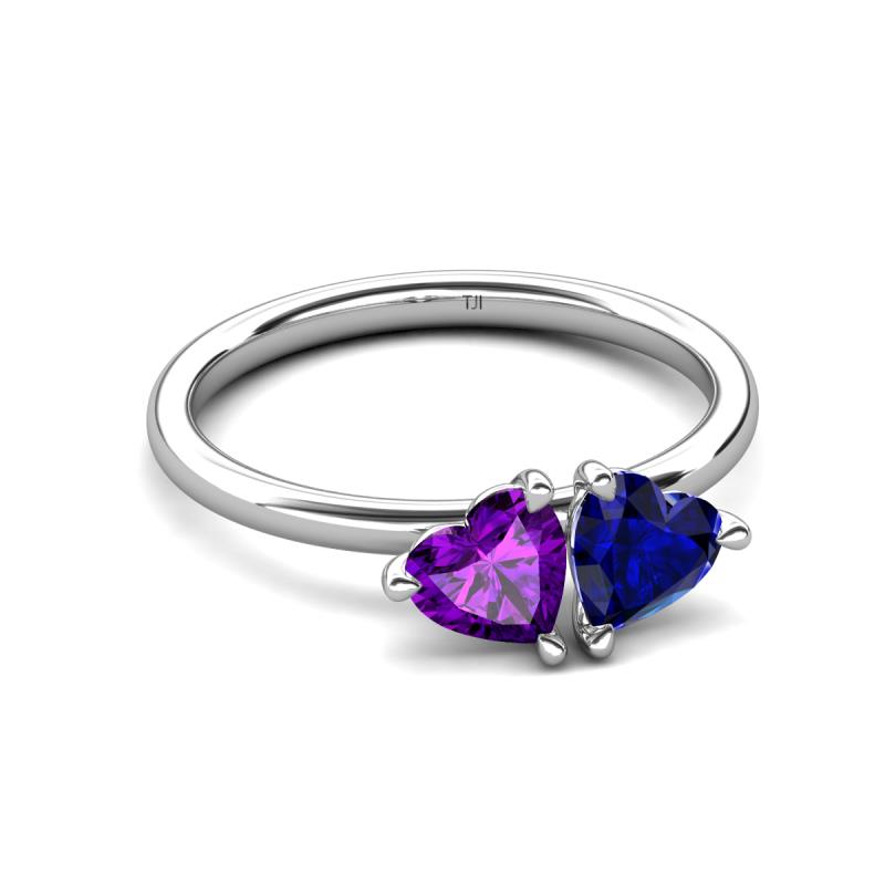 1.58 ctw Heart Shape (6.00 mm) Amethyst & Lab Created Blue Sapphire with Tiger Claw Prong setting Two Stone Duo Women Engagement Ring in 18K White Gold More Details ...