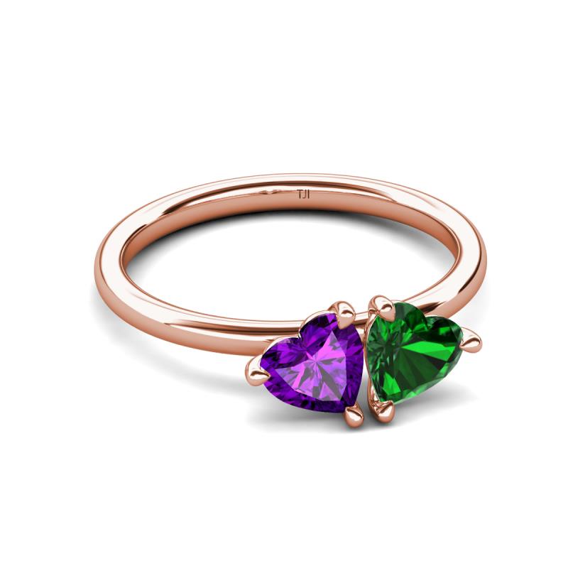 1.43 ctw Heart Shape (6.00 mm) Amethyst & Lab Created Emerald with Tiger Claw Prong setting Two Stone Duo Women Engagement Ring in 10K Rose Gold More Details ...