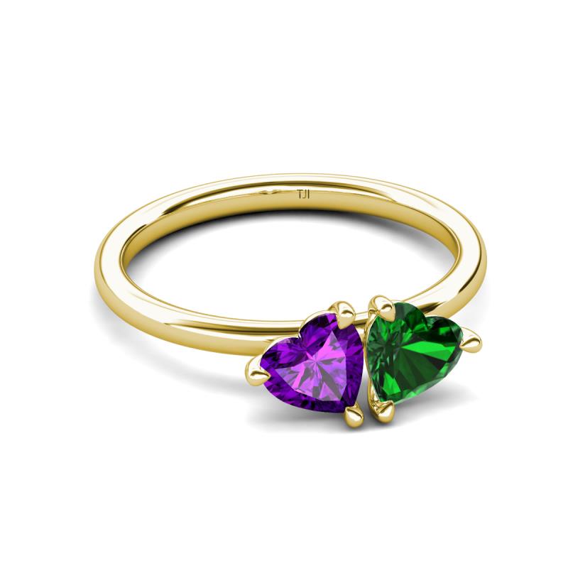1.43 ctw Heart Shape (6.00 mm) Amethyst & Lab Created Emerald with Tiger Claw Prong setting Two Stone Duo Women Engagement Ring in 18K Yellow Gold More Details ...