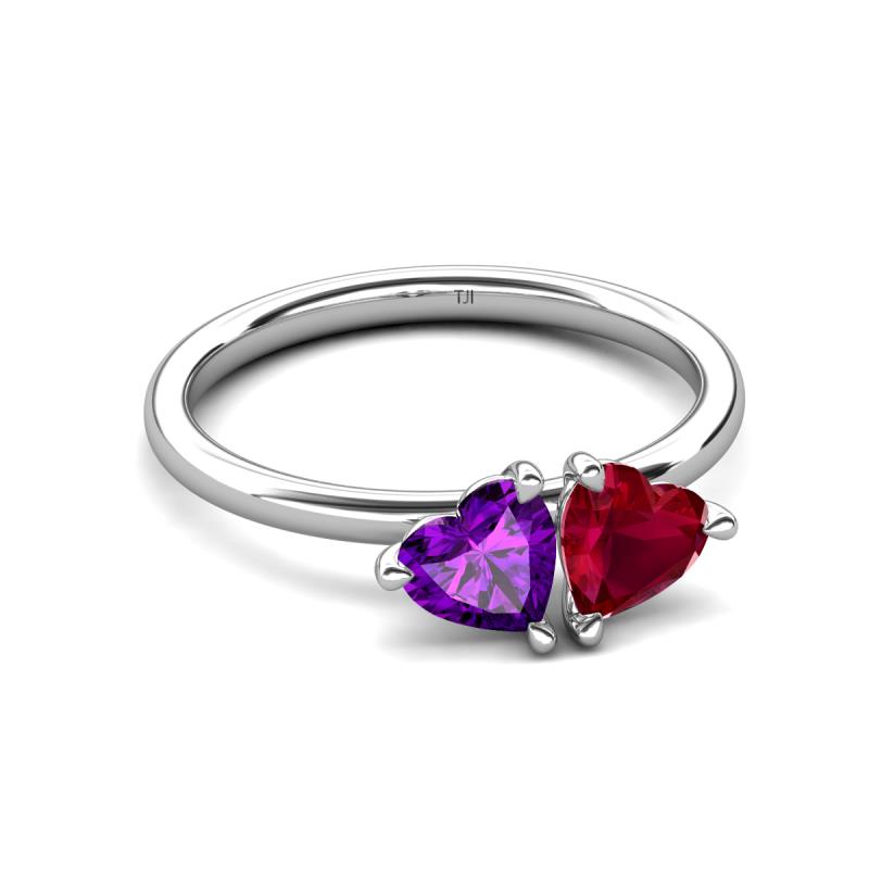 1.48 ctw Heart Shape (6.00 mm) Amethyst & Lab Created Ruby with Tiger Claw Prong setting Two Stone Duo Women Engagement Ring in Platinum More Details ...