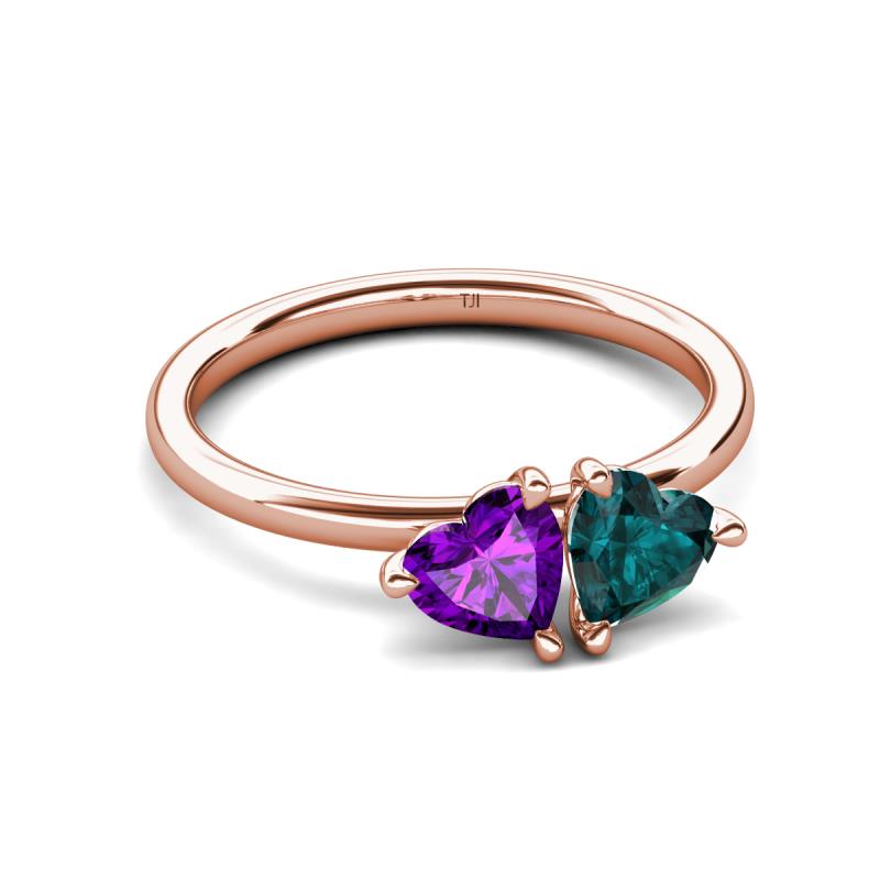 1.68 ctw Heart Shape (6.00 mm) Amethyst & London Blue Topaz with Tiger Claw Prong setting Two Stone Duo Women Engagement Ring in 18K Rose Gold More Details ...